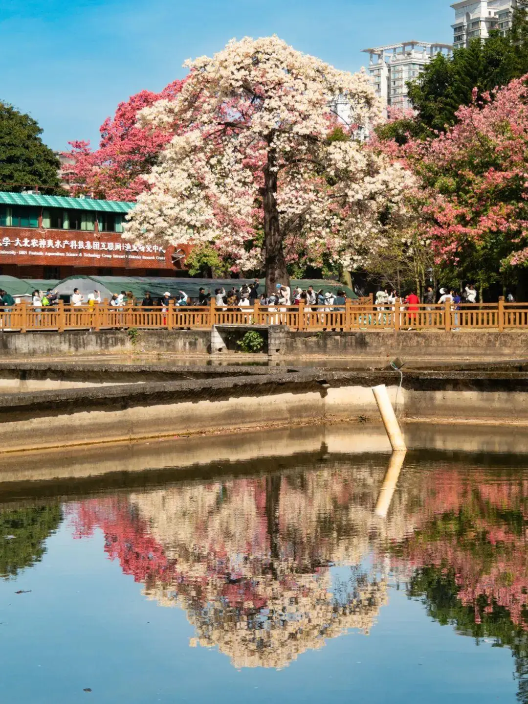 初冬的广州,堪称“浪漫主场”。华南师范大学校园内“花王”白异木棉飘雪湖面,粉色花廊载满青春记忆,让人不禁回想起那些年少美好。